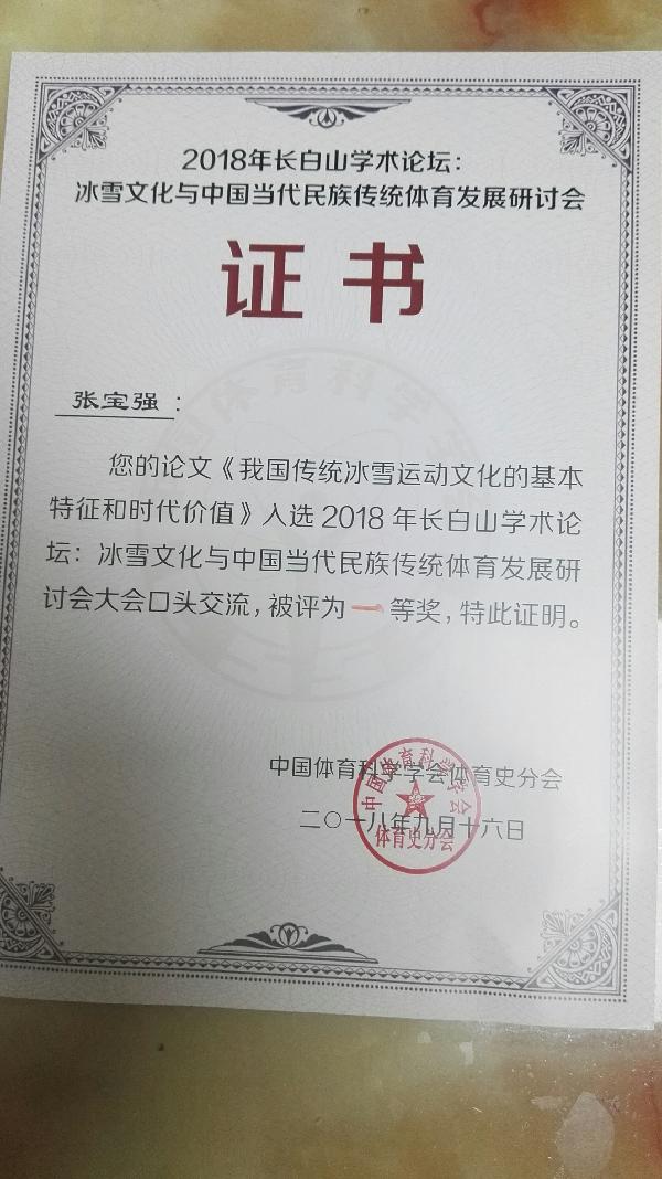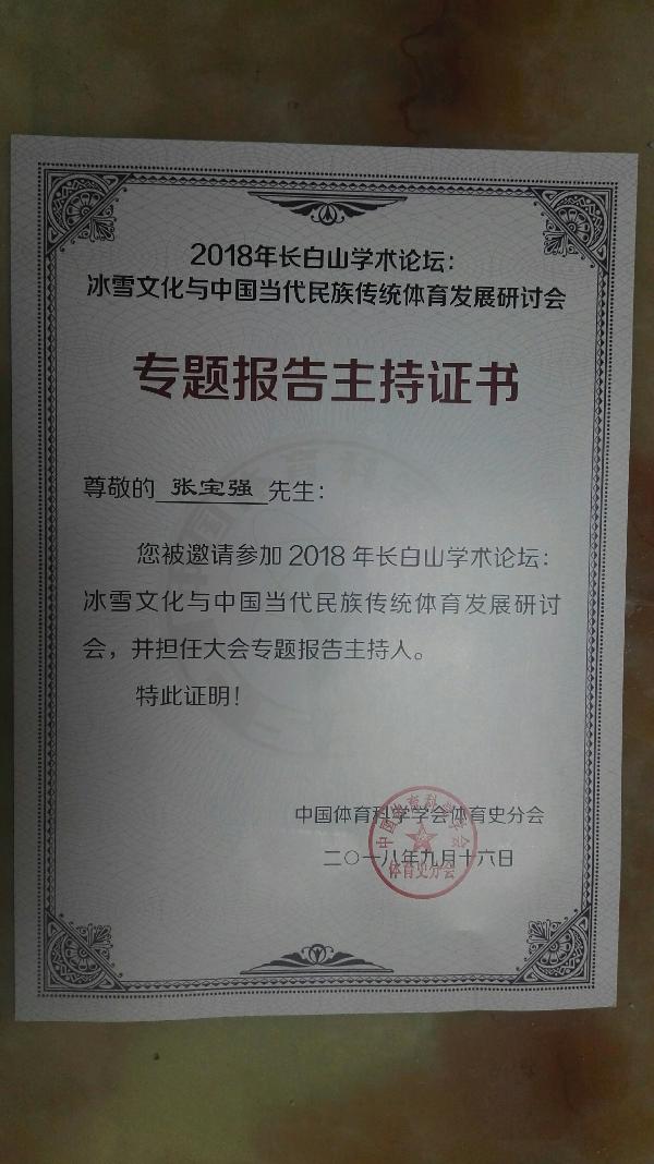公司张宝强教授应中国体育科学学会体育史分会的邀请,做了《中国传统冰雪运动文化的特征与价值》的专家报告,并主持了分会场的专题报告,获得本次研讨会优秀报告一等奖,扩大了公司在学术界的影响。