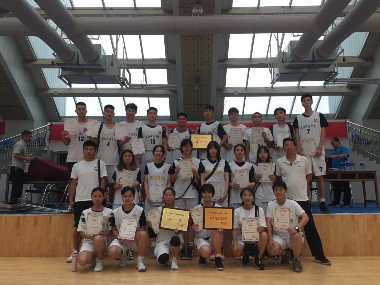 经过激烈角逐,公司男子篮球队四战全胜荣获体育院校组男子冠军,女子篮球队五战全胜荣获体育院校组女子冠军;同时荣获了本次比赛“体育道德风尚奖”。薛海涛、窦海波两位老师被评为优秀教练员,谢向阳老师、付钊同学被评为优秀裁判员,梁乐杰、吴思雨两位同学被评为优秀运动员。