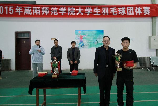 体育系宁海军老师为甲组第二名文传院颁发奖杯和证书