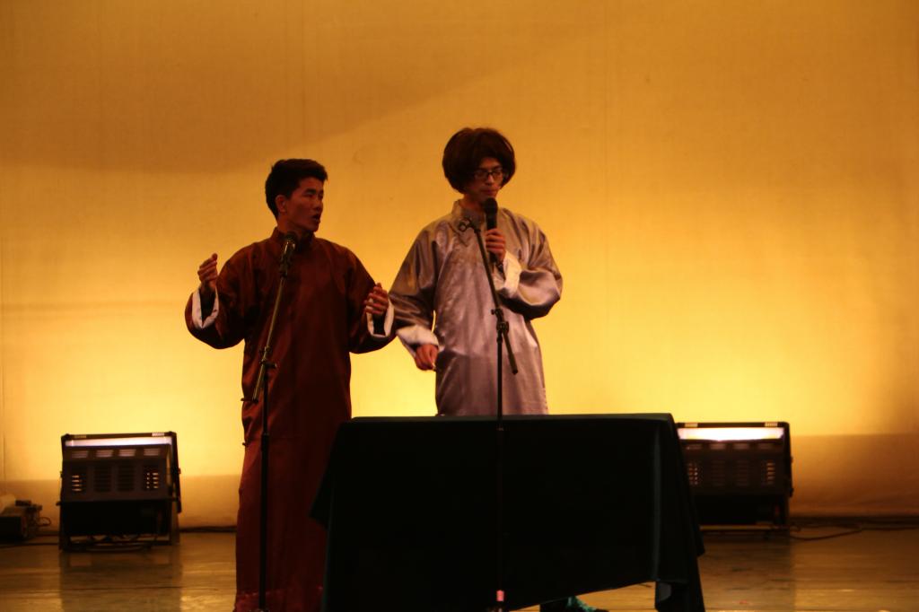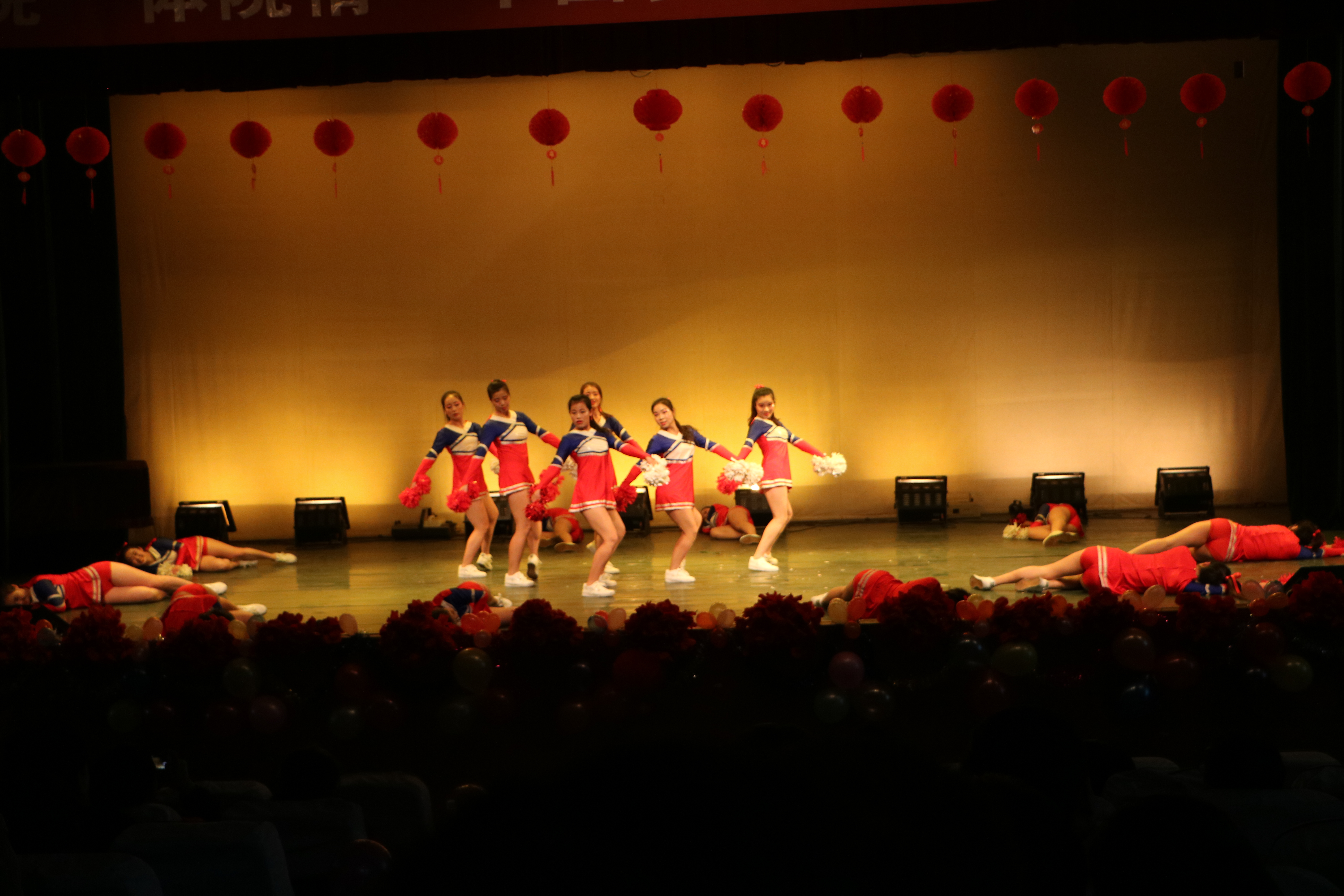 本次晚会旨在演绎体院学子激情无限、绚丽多姿的青春和风采。晚会节目形式多样,内容丰富,包括哑剧、歌曲、啦啦操、中华武术、小品、相声等共11个节目,中间穿插互动游戏。现场气氛热烈,台下座无虚席,掌声、喝彩声、欢呼声此起彼伏。相声《大学初体验》滑稽的本色表演,使在场员工感同身受,忆起初始的苦辣酸甜;小品《我是演员》幽默的场景再现,充分彰显了体育学子的热情奔放、诙谐风趣的独特气质,再加上气势磅礴的中华武术、火辣劲爆的爵士舞、青春靓丽的健身操将晚会推向一个又一个高潮,热烈的氛围温暖了黑暗的寒冬……另外,别出心裁的微信互动,生动活泼的游戏活动,拉近了舞台与观众的距离,使晚会更加热烈、喜庆。