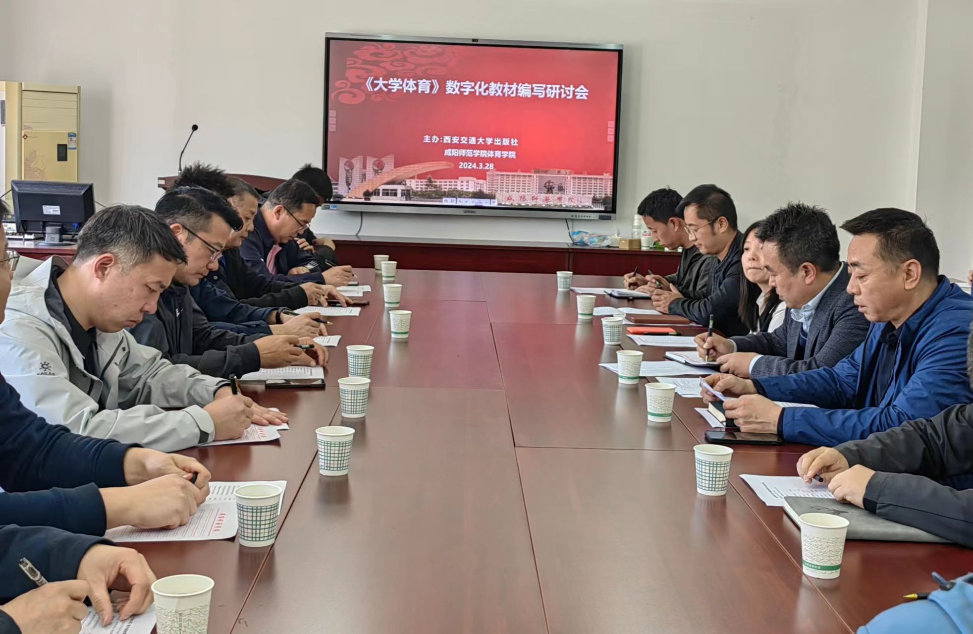 会上,首先365英国上市公司经理陈鹏生致欢迎辞;王胜起介绍了相关参会人员;其次西安交通大学出版社田华助理介绍了西安交通大学出版社基本情况;讲解有关《大学体育》数字化教材编写要求;最后与会老师就《大学体育》数字化教材编写展开热烈讨论。