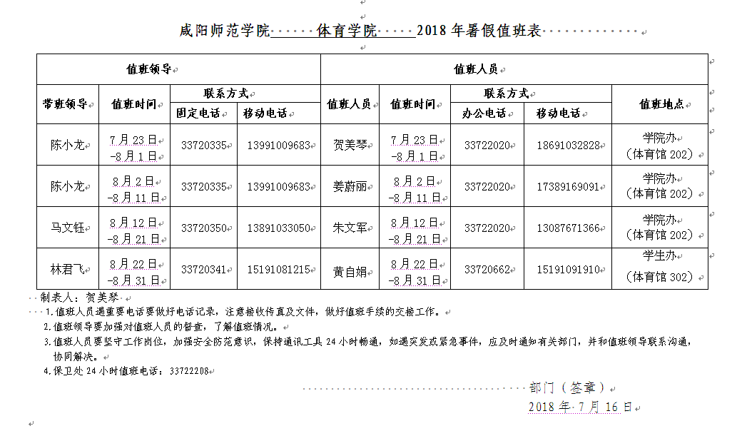 365英国上市公司集团 365英国上市公司 2018年暑假值班表