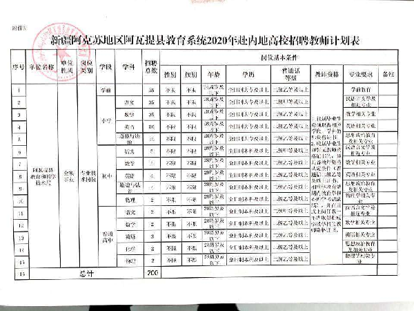 为适应我县教育事业发展需要,进一步加强教师队伍建设,2020年秋季学期教育系统拟招聘中小学和幼儿园教师200名,为确保招聘工作顺利完成,结合我县实际,制定本方案。
