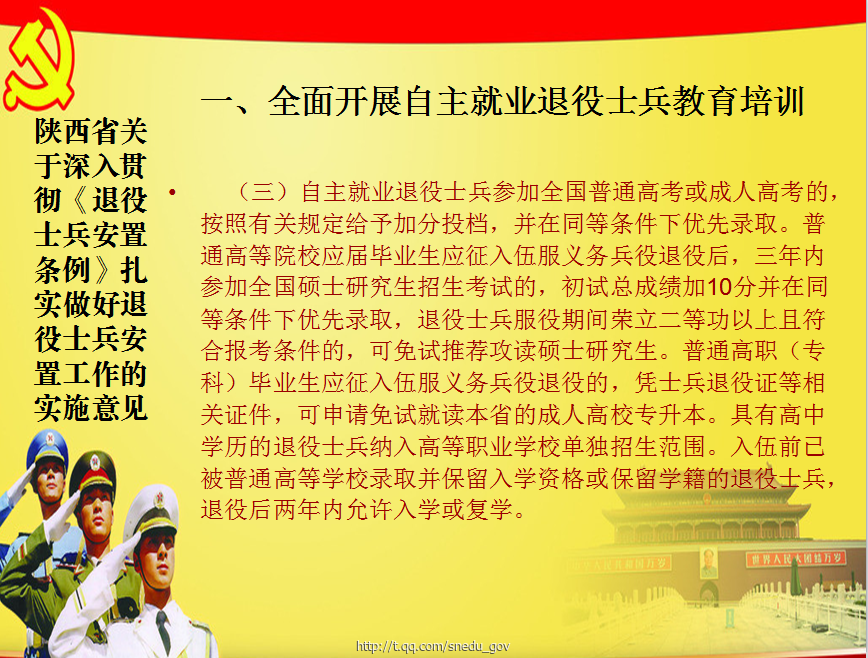 退役的普通高校应届毕业生三年内参加全国硕士研究生招生考试,初试总成绩加10分并在同等条件下优先录取;荣立二等功以上且符合报考条件的可免试推荐攻读硕士研究生。应征入伍的高职毕业生凭士兵退役证可申请免试就读本省成人高校专升本。